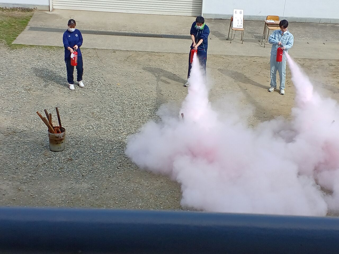避難訓練 2025年04月18日 春の避難訓練を実施しました。ベルが鳴りスタートして実習場前の集合場所に一番早く揃ったのは2年の機械科でした1分30秒、一番遅かったのは1年普通科総合コース5分30秒でした、2年生機械科は実習中でした。3人の生徒さんは生徒会の役員です。消火器の使い方の勉強になったと思います。 < 前の記事次の記事 > コメント コメント一覧 (1) 1. 生徒 2025年04月19日 22:31 毎年こんなことやってるんですね 面白いですね またやるんでしょ。 0 copd58 がしました コメントフォーム 名前 コメント 記事の評価 リセット リセット 顔 星 情報を記憶 コメントを投稿する